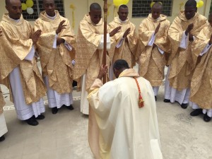 Yesterday, the feast of the Most Holy Trinity, during a celebration in the presence of many of the faithful in the parish of San Gerardo, Port au Prince, nine Redemptorist deacons were ordained to the priesthood. The celebration was presided over by the Bishop of Les Cayes, Cardinal Chibly Langlois, who concelebrated with many priests and missionaries who came from the neighbouring villages. The new priests had to continue their studies outside of Haiti because of the earthquake that devastated the island in 2010. The new priests are: Jean-Marie, Mervil, Thierry, Junior, Jacky, Jean-Charles, Yvon, Pierre Antoine and Jean Jacques.
